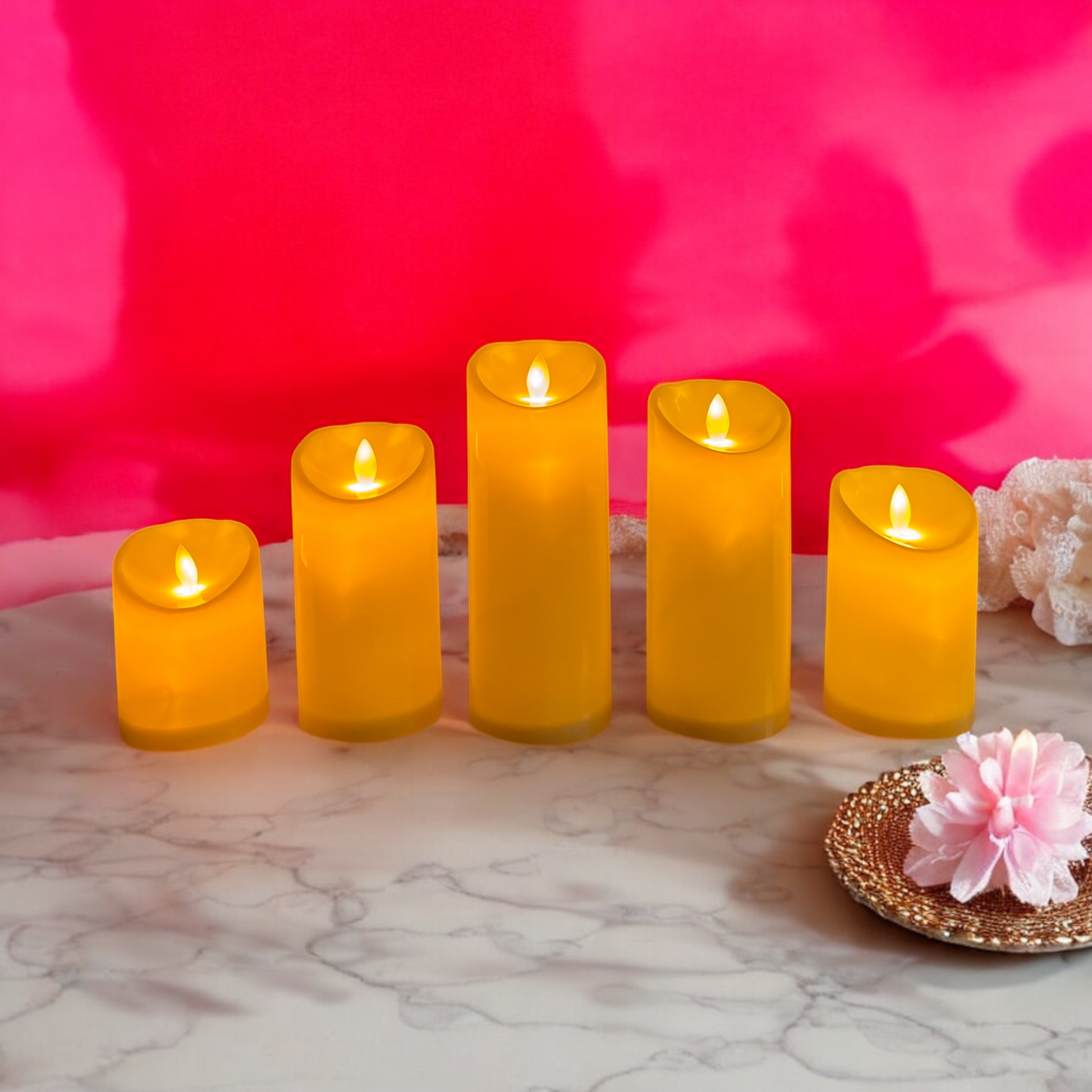 Transform your home with this set of 5 artificial flickering candles, designed to create a warm and inviting ambiance. Battery-operated for convenience, these candles mimic the gentle glow of real flames without the hassle of wax or smoke. Perfect for any room, they add a touch of elegance to your decor, making them ideal for special occasions or everyday use. Enjoy the cozy atmosphere without the worry of fire hazards.