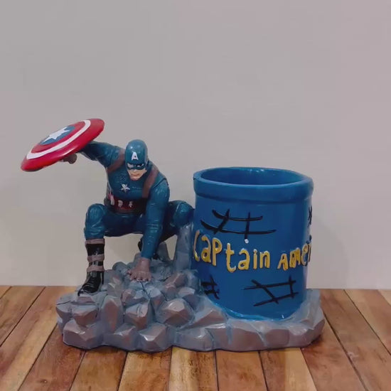 Captain America Resin and Metal Pen Stand- Desk Organizer