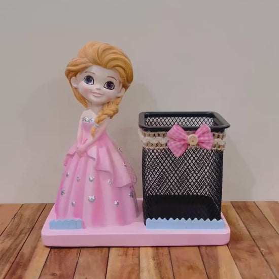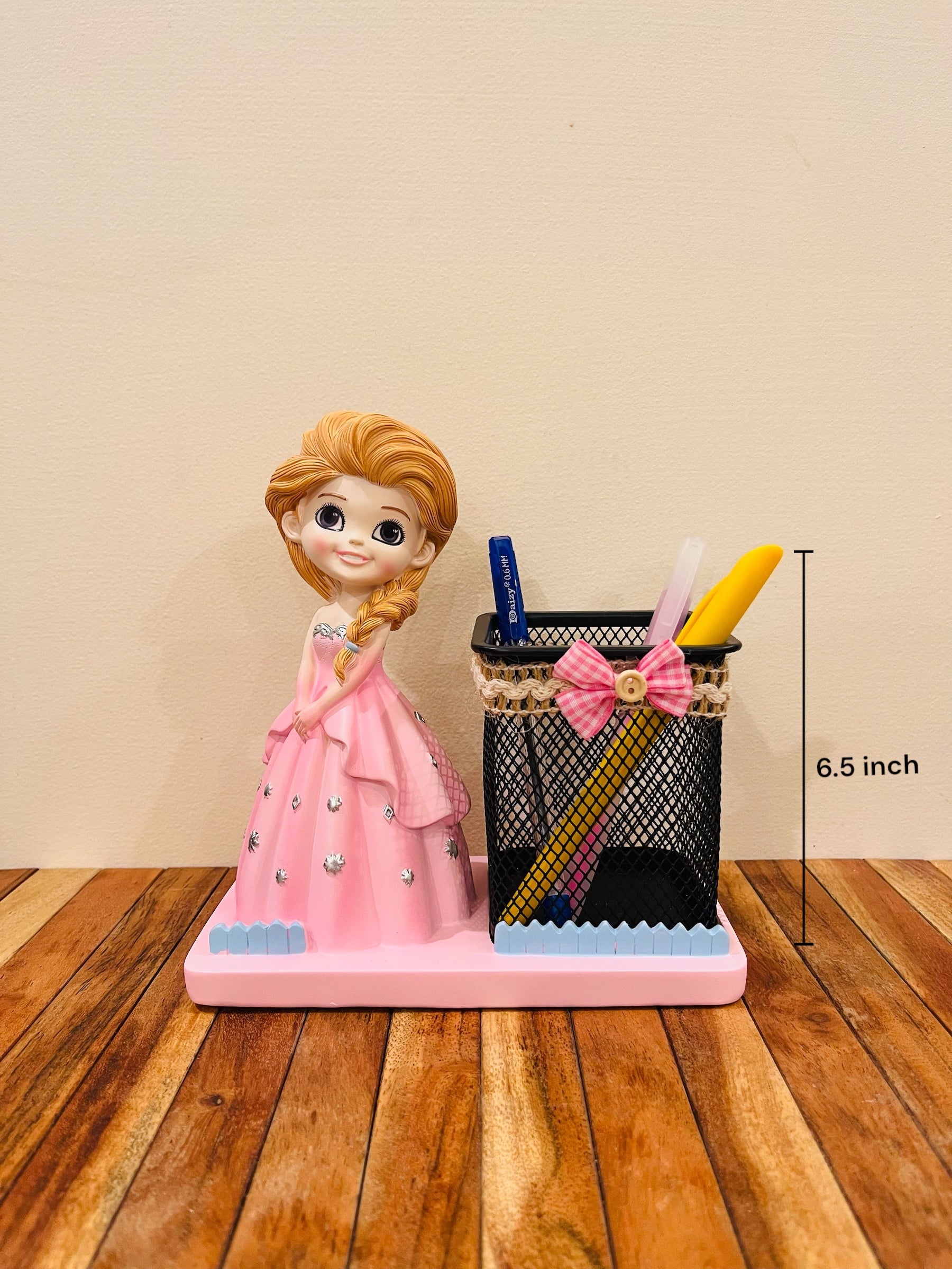 Elegant Resin and Metal Princess Pen Stand- Desk Organizer