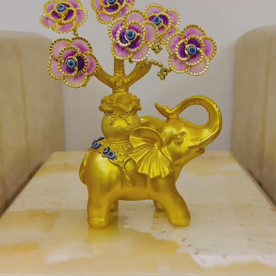 Golden Elephant with Evil Eye Flower Tree for Table Decor