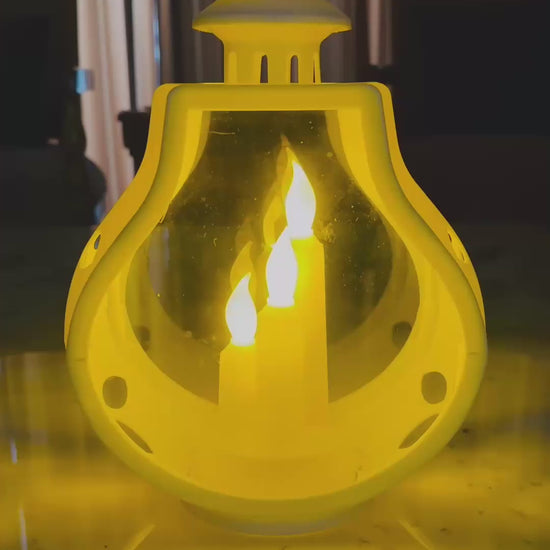 Modern Sculptural White Lantern with Integrated Triple LED Flameless Candles
