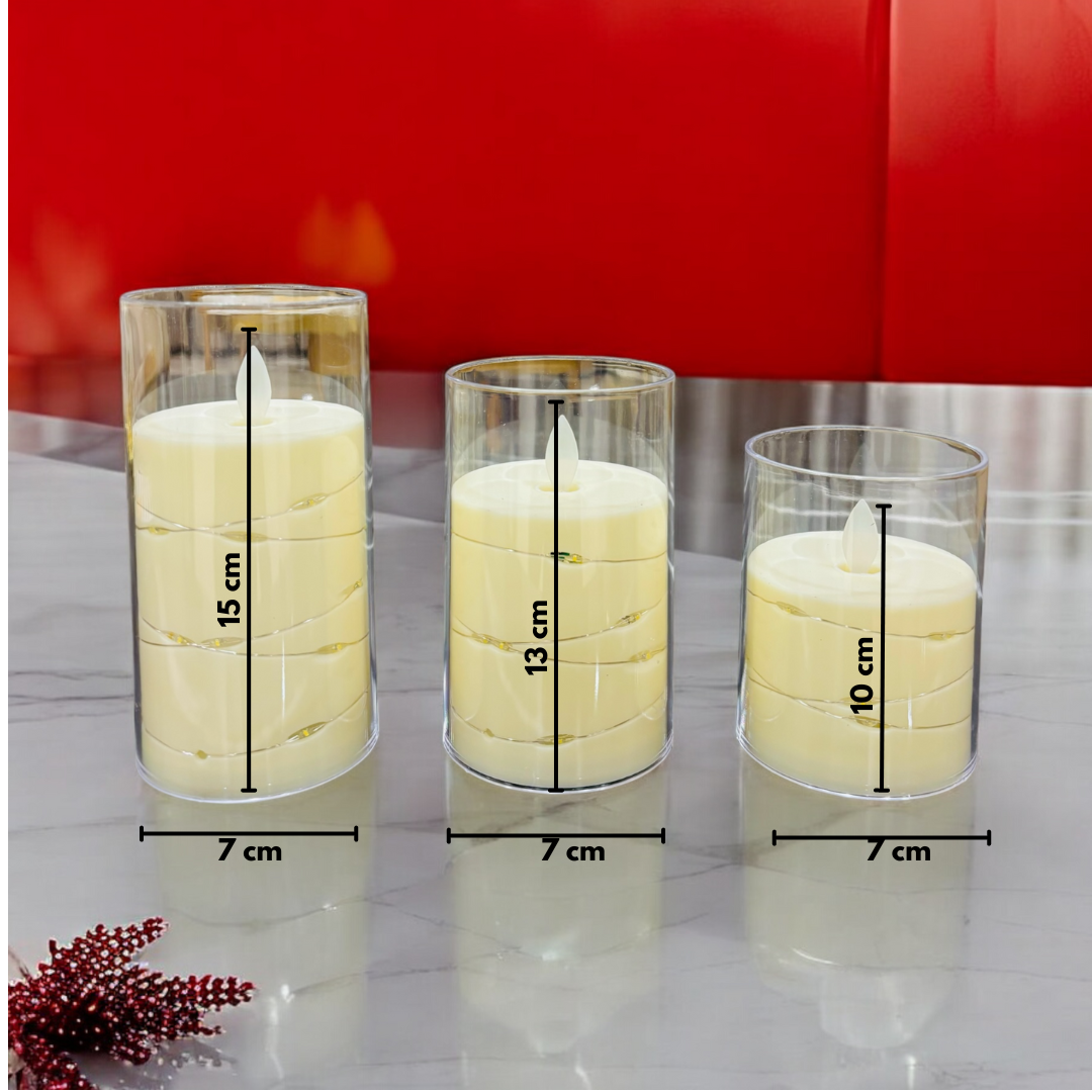 Artificial LED Candles with Glass Set of 3 – Warm Glow with String Lights for Ambient Decor