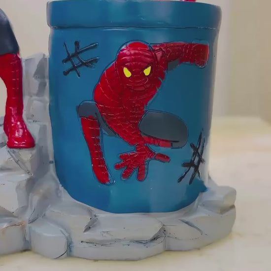 Add a heroic touch to your desk with this Spiderman Metal Pen Stand Desk Organizer, designed for fans of the iconic web-slinging superhero. Featuring a dynamic 3D Spiderman figure poised on rugged rock detailing, this organizer combines functionality with eye-catching decor.