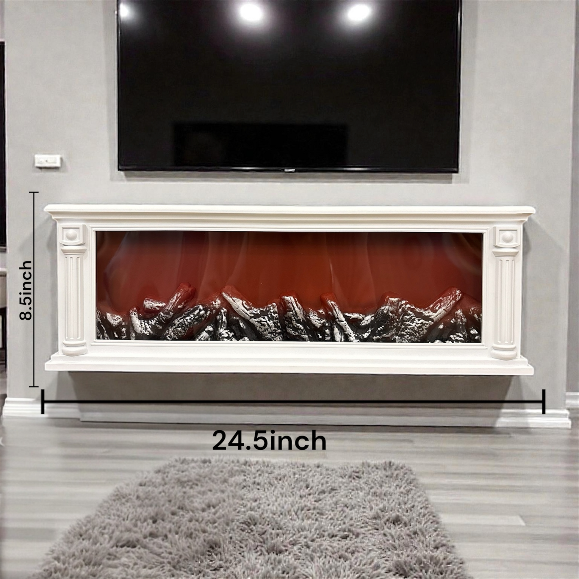 Bring the warmth and charm of a traditional fireplace to any room with this Mini LED Electric Fireplace Heater. Designed with an elegant white mantel-style frame and realistic glowing ember logs, it creates a cozy ambient flame effect without smoke, heat, or maintenance. The vivid LED lighting simulates a natural fire, making it perfect for living rooms, bedrooms, offices, or holiday décor.